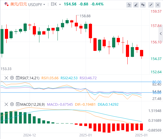 相反,如果突破1月23日的156.75高点,将推动该货币对升向1月15日的158.08高点和1月10日的158.88高点。