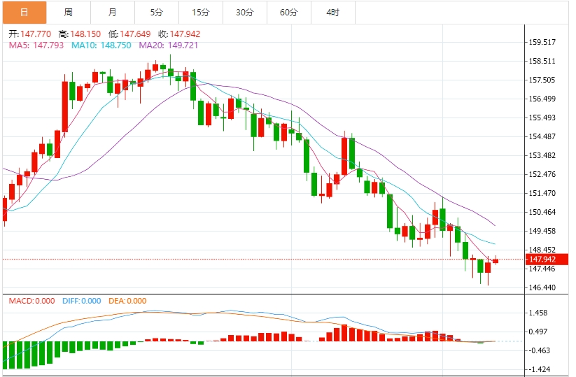 技术上,美元/日元在年内低点146.54附近形成了「锤头底部」两根蜡烛图形态,暗示下行趋势在从约158.00下跌至当前汇率后似乎过度延伸。 尽管看跌,相对强弱指数(RSI)保持平稳,表明卖压正在减弱。