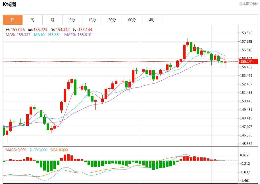 阻力位:155.25 155.35 155.53