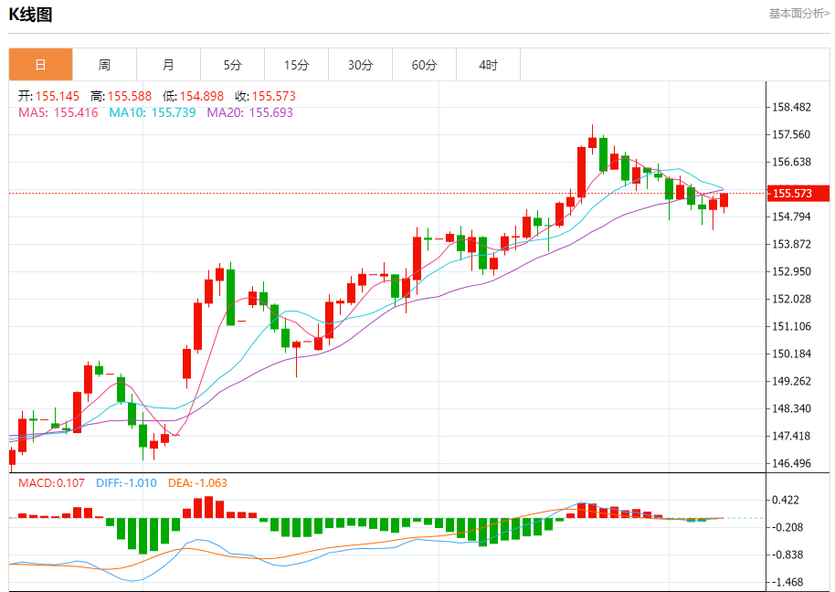 技术图形显示,美元在上周五从三周低点反弹后获得看涨动能。 价格走势已突破自11月20日高点以来的下行通道顶部,并寻求在155.50(12月4日和5日高点)上方获得看涨确认。