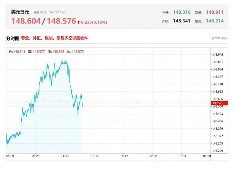 今日周三,截止目前美元兑日元报148.668,上涨0.20%。 日元基本面行情分析 日本央行行长植田和男释放加息信号。 9月3日,日本央行行长植田和男在与日本首相石破茂会谈后表示,如果日本经济增长和物价符合展望,日本央行将加息。受此影响,日本股市全线下挫,东证指数大跌超1%。 与此同时,