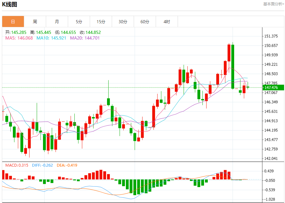 美元兑日元今日汇率最高147.517,最低147.508,涨跌-0.097,涨跌幅-0.07%。 市场基本面分析 日本央行可能会开始通过对经济展望发出不那么悲观的看法来传达这一前景。但四位熟悉日本央行想法的消息人士称,近期加息很难说已板上钉钉,加息时机取决于经济能否承受美国关税的影响。一位消息人士说:“随着笼