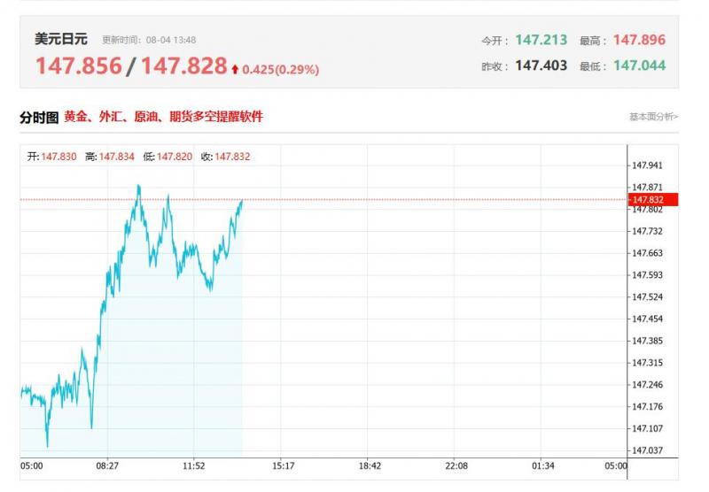 8月4日,日元对普遍反弹的美元(UD)保持负面倾向,并帮助美元/日元货币对在日高点147.75区域附近保持小幅上涨。日本央行(BoJ)上周的鸽派倾向,加上国内政治的不确定性,表明加息前景可能会推迟更长的时间。这反过来又被视为日元在新一周开始时表现相对不佳的关键因素。 然而,股市普遍疲软的基调可能会提供一些支撑