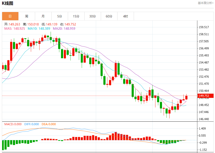 周四亚盘,美元/日元徘徊于148.23附近,日内下跌0.29%。 市场基本面分析 美元/日元在周三因联邦公开市场委员会(FOC)决定维持利率不变而上涨。尽管官员们对利率持谨慎态度,但美元(UD)未能大幅反弹。该货币对徘徊在149.37附近,几乎没有变化。 在其货币政策声明中,美联储(Fd)承认劳动力市场状况依然稳健,但