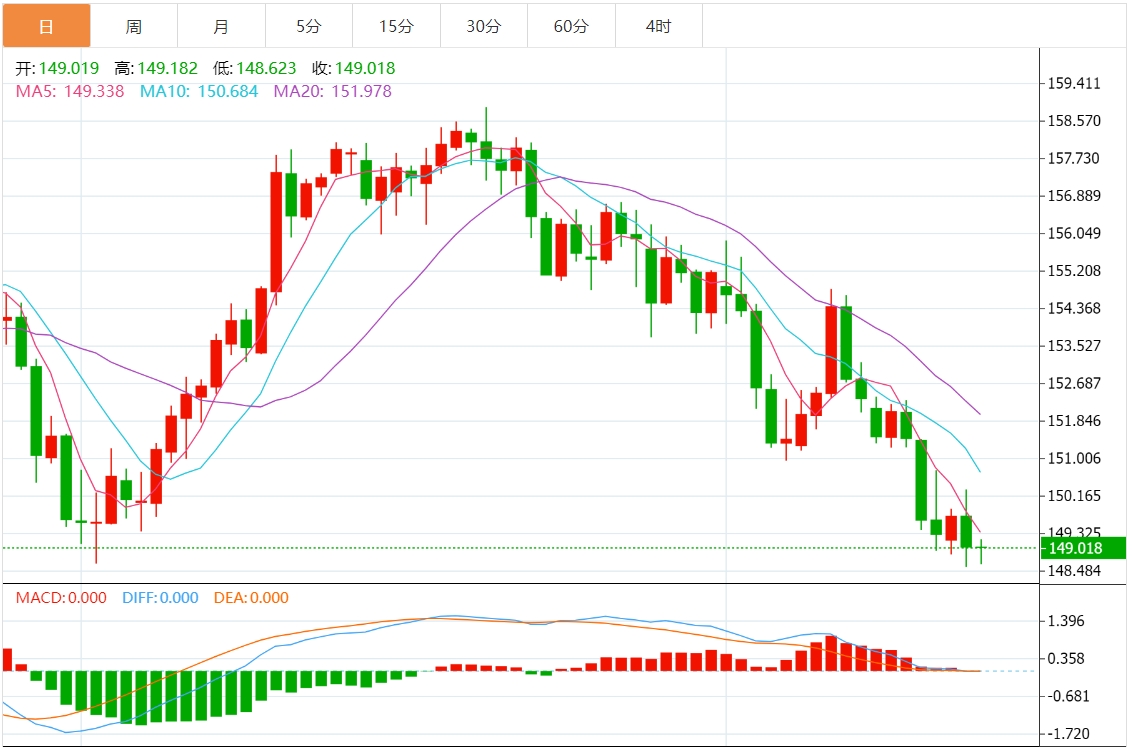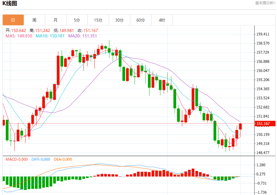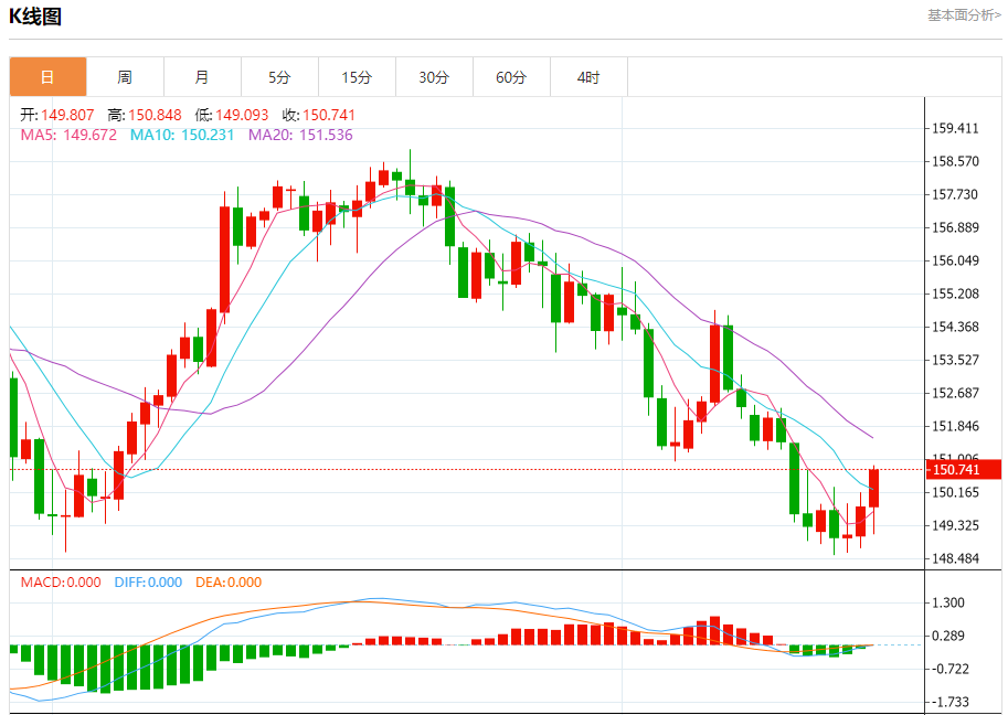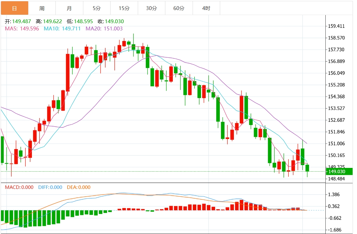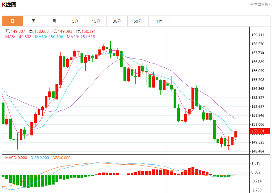 美元兑日元今日汇率最高150.482,最低150.455,涨跌-0.115,涨跌幅-0.08%。 市场基本面分析 日本央行副行长内田真一周五明确表示,尽管近期国债收益率上升,央行仍将继续缩减购债规模,并强调其巨额债券持仓对经济仍具有强大的刺激效应。与此同时,内田重申,若经济和物价走势符合预期,央行准备进一步提
