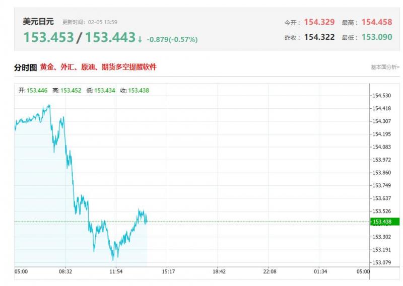 2月5日,周三欧市盘中,在日本央行(BoJ)鹰派预期的背景下,美元/日元货币对周三吸引大量跟进卖盘,并在欧洲交易时段前半段跌至153.00附近,即12月13日以来的最低水平。今天早些时候发布的初步政府报告显示,日本12月名义工资同比增长4.8%,为近三十年来最快增速。此外,实际工资连续第二个月增长,报告月增长3.6%,这