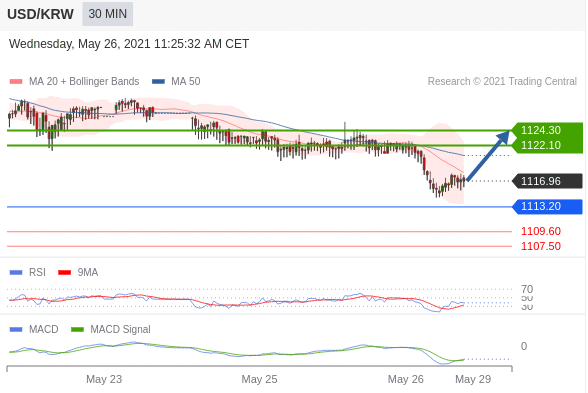 UD/KRW当日内:有上涨的可能,目标价位定在1124.30。 有上涨的可能,目标价位定在1124.30。 1113.20作为转折点。 交易策略:有上涨的可能,目标价位定在1124.30。 备选策略:如跌破1113.20,UD/KRW目标方向定在1109.60和1107.50。 技术点评:RI技术指标低于50。ACD技术指标处在其信号线之上看空。此外,价位