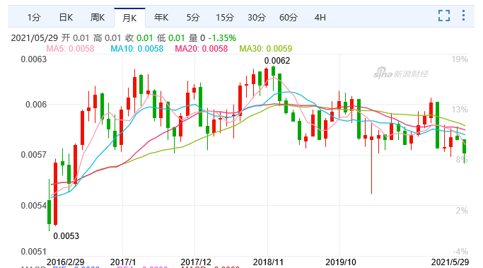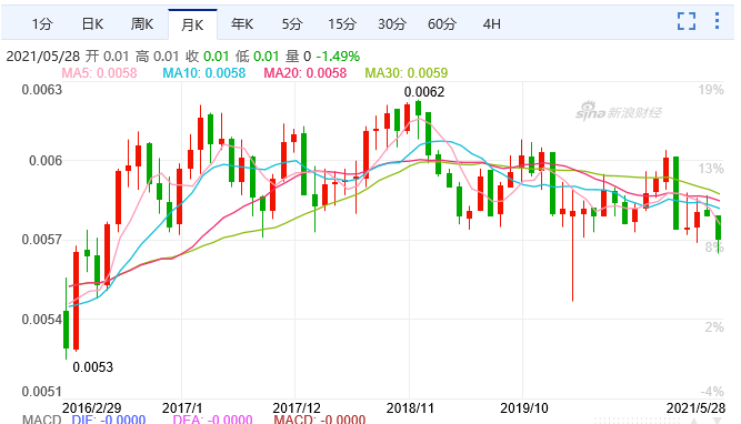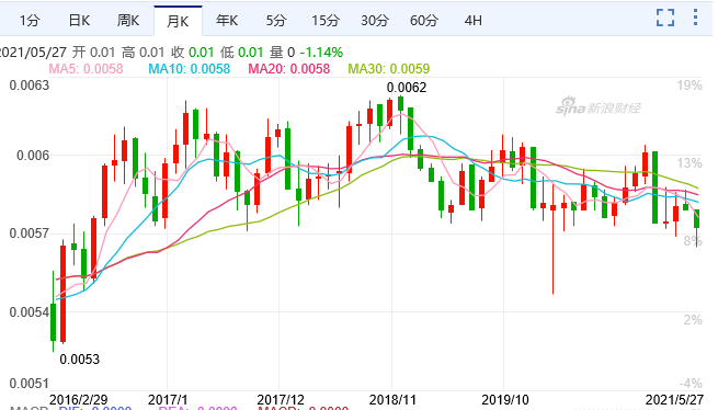1韩元=0.005710人民币 1人民币≈175.1269韩元 转换数据仅供参考,交易时以银行柜台成交价为准更新时间:2021-05-2807:54