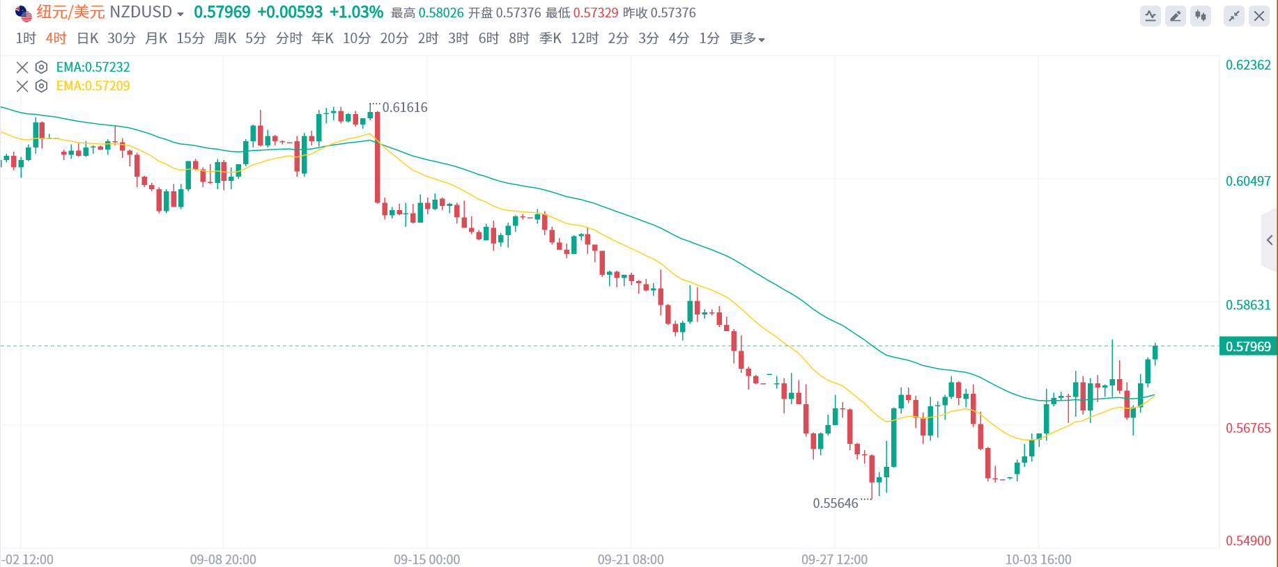 亚市美元指数可能会延续下行趋势,这可能会导致纽元/美元继续看涨,纽元/美元正实现突破接近纽储行决议公布后录得的高点,然后若纽元/美元上涨突破0.5800,将有可能将接近0.5820 - 0.5835价格不均衡区,然后将接近0.5850。