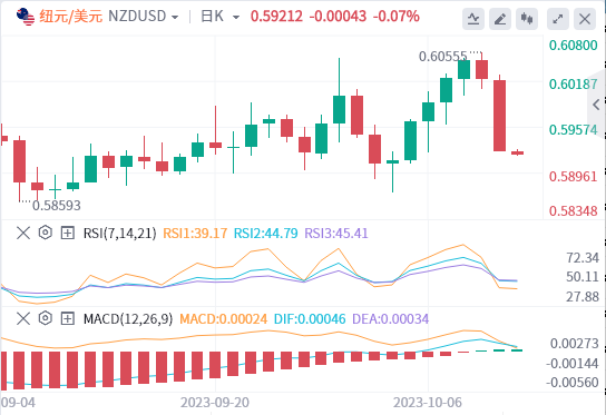 另一方面,美债收益率小幅回落之后,美元难以延续前日从愈两周低点反弹的强劲势头。然而,这并没有吸引到纽元/美元多头,但有助于阻止纽元/美元延续下跌。最近数位美联储官员发表鸽派言论表明,美联储加息周期已接近尾声。这因此又抑制了美国债券收益率,并使美元多头处于守势,尽管在美联储加息押注重燃的情况下,美元下行空间仍然获得支撑。
