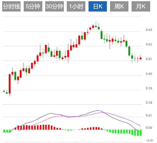 今天的预期交易区间在0.6060支撑位和0.6160阻力位之间
