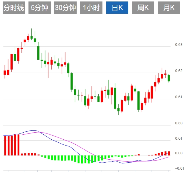 今日预期交易区间在 0.6110 支撑位和 0.6210 阻力位之间