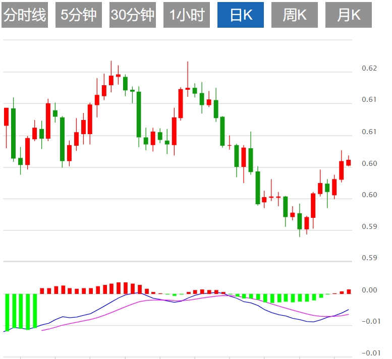 今天的预期交易区间在0.6030美元支撑和0.6135美元阻力之间