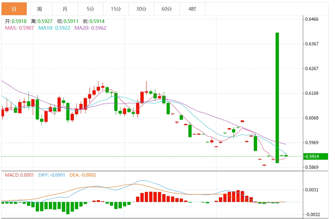 预期交易范围:在0.5880$的支撑和0.5980的阻力之间
