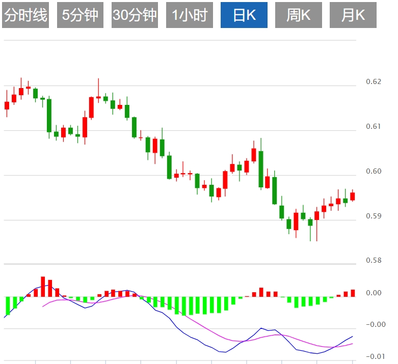 今天的预期交易区间在0.5920美元支撑和0.6015美元阻力之间。