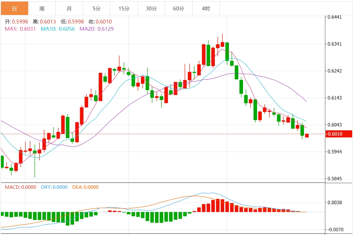 技术上,纽元货币对从0.6050附近的61.8%斐波纳奇回撤位回撤后重启下行之旅。 斐波工具绘制了从7月29日低点0.5857到9月30日高点0.6380的回撤线。在0.6150附近的20天和50天指数移动均线(EMA)死叉显示了下行趋势。14天相对强弱指数(RSI)在30.00以下震荡,显示看跌者动能较强。