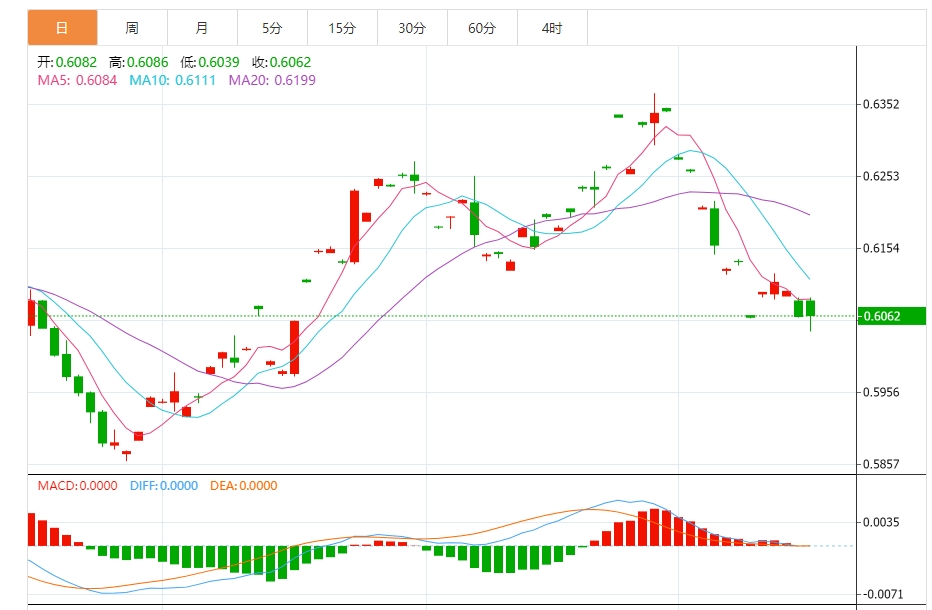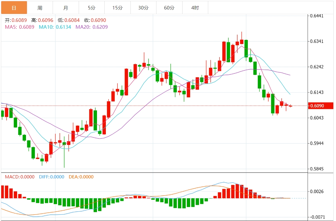 周五亚市,纽元/美元延续盘整,并维持处在本周初触及的近两个月低点附近。纽元/美元持稳于0.6065区域附近,继中国经济数据总体向好后纽元/美元波动不大。 中国国家统计局公布的官方数据显示,中国第三季GD季率-单季0.9%,年率为4.6%。另一份报告显示,中国9月社会消费品零售总额年率3.2%,预期为2.5%工业生产年率成长5.