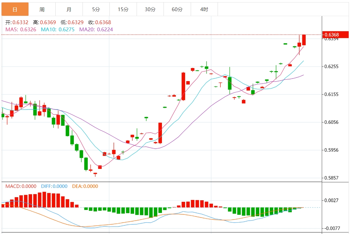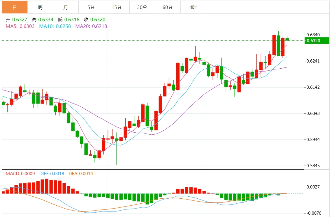 周一亚盘,纽元/美元盘中拉升,现报0.6347附近,日内上涨0.43%。对美联储(Fd)在11月再次超额降息的押注不断增加,这令美元(UD)承压。中国9月采购经理人指数(I)报告将于周一晚些时候公布。 市场基本面分析 在美国联邦储备委员会(Fd)官员发表鸽派言论后,美元可能面临下行压力。根据路透社报道,美联储理事丽