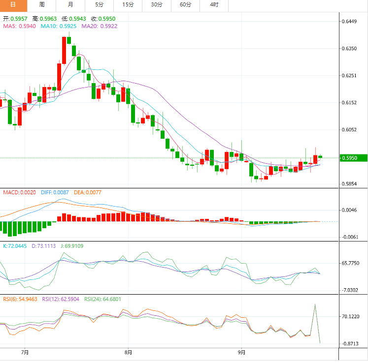周三亚盘,纽元/美元连续第三天上涨,截止发稿,纽元/美元上涨01.3%至0.5943附近。然而,在美国联邦储备委员会(Fd)做出决定之前,两人在当天早些时候面临压力。 市场基本面分析 市场情绪认为,美联储将在9月份将利率保持在目前5.25%-5.50%的区间,这可能会给绿背政策带来压力。根据芝加哥商品交易所FdWatchTool的数