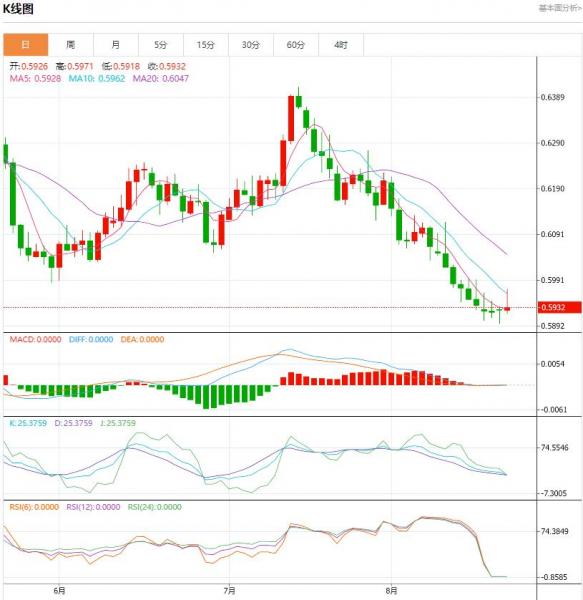 周五亚盘,纽元/美元维持守势,处在0.5900关口上方。美元走强且美债收益率上升,纽元/美元上週五连续第八个交易日处于负值区域。纽元/美元目前交投于0.5941附近,日内涨幅0.28。 市场基本面分析 美国劳工统计局(BL)公布的数据显示,在截至8月12日的一周里,美国申请失业救济人数增至23.9万。该数据略低于市场预期的