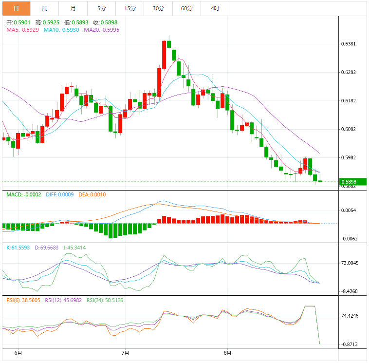 周五亚盘,纽元/美元盘整在0.6000关口下方,现交投于0.5974附近,日内上涨0.14%。美国经济数据公布后,美元指数涨跌互现。市场参与者在等待美国时段晚些时候公佈的备受瞩目的美国非农就业数据。预计非农增加17万个。 市场基本面分析 周四美联储首选的通胀指标7月美国核心个人消费支出价格指数从前值4.1%上升至4.2%,符