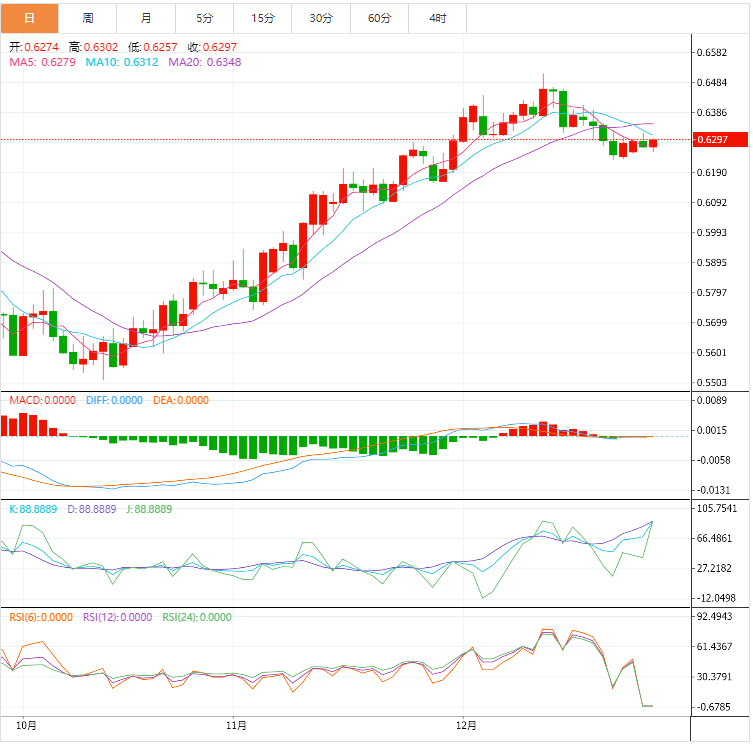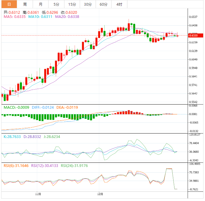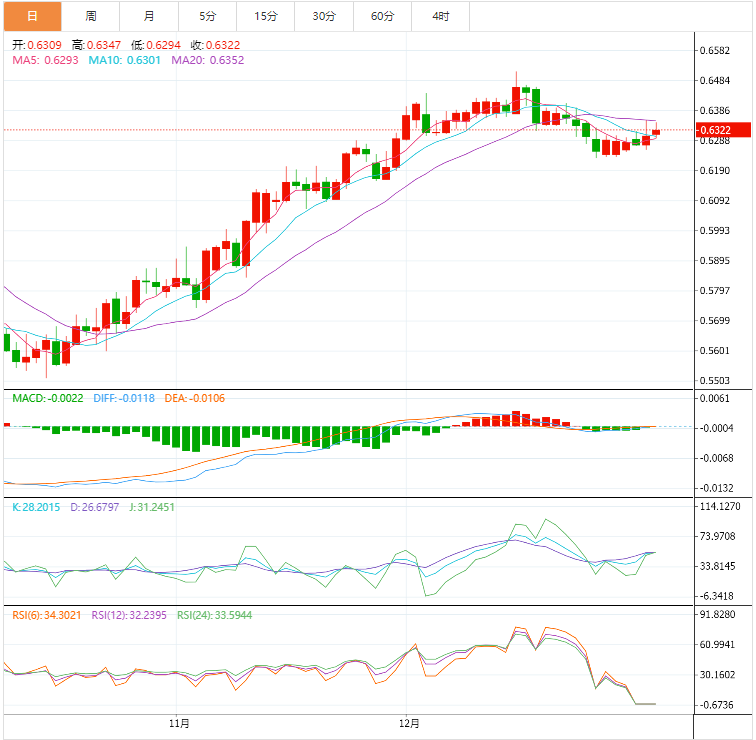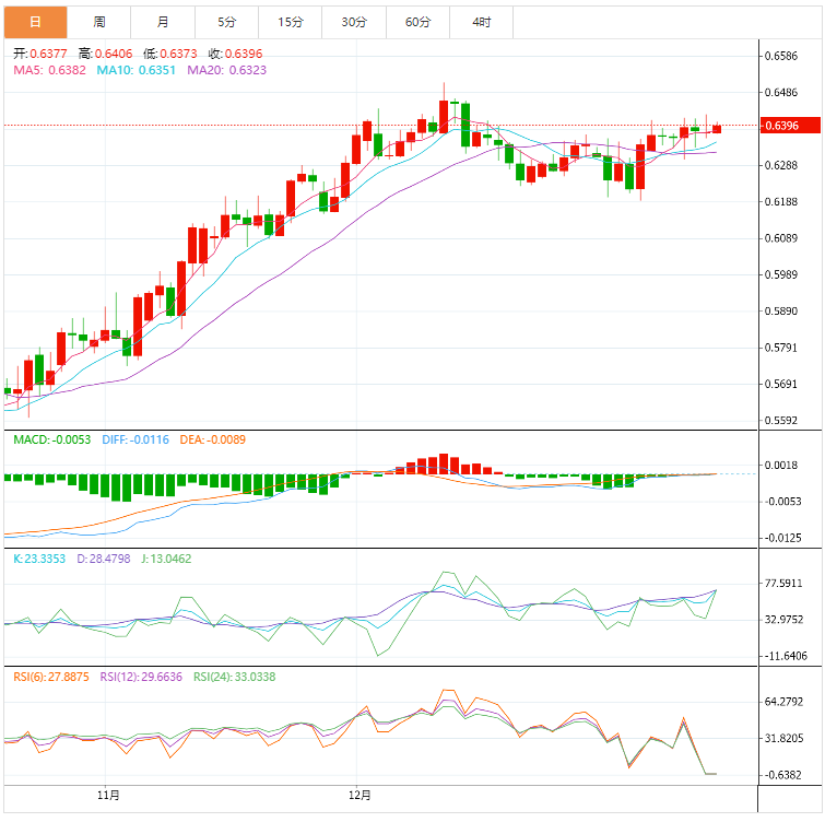 周四盘中,纽元兑美元上涨至0.6324,涨幅0.21%。 基本面上,美联储继续採取超鹰派的货币政策,对美国的房地产行业产生了重大影响。週三,全国房地产经纪人协会公佈了11月份的待售房屋销售量,环比下降了4%,而市场预期是扩大0.6%。美联储较高的利率迫使家庭在目前的关头放弃购买新房的表达。虽然,风险感知型资产正面
