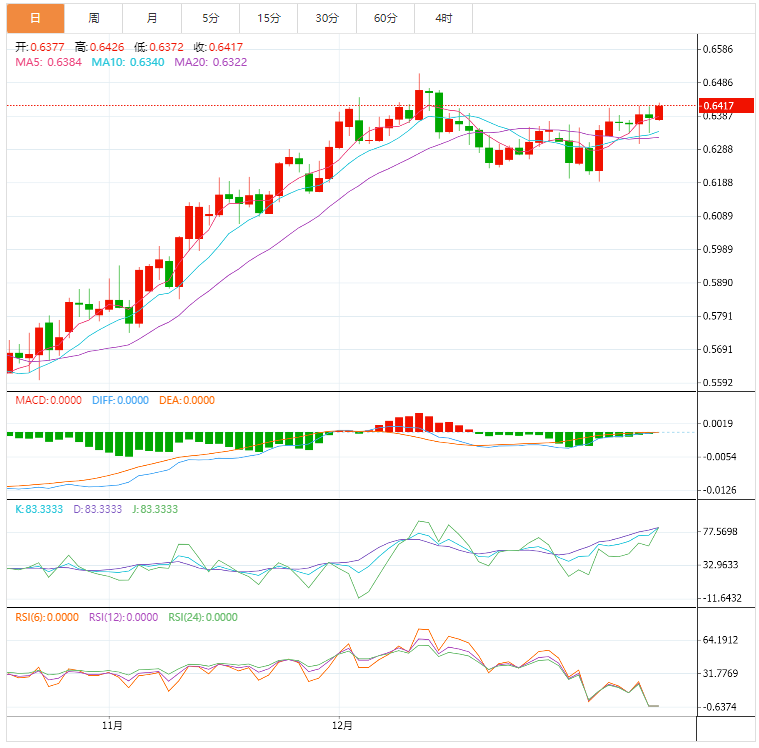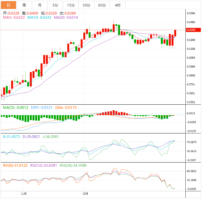 周一盘中,纽元兑美元上涨至0.6401,涨幅0.87%。 基本面上,纽元/美元从日低点上涨了100个点,目前交易于0.6290,维持强劲的看涨基调。在高于预期的非农就业报告发布后,美元转为下行。然后短暂回升,在I12月服务业报告显示跌幅大于预期后,美元再度下行。美国国债收益率暴跌,10年期国债收益率从3.75%跌至3.61%,为去