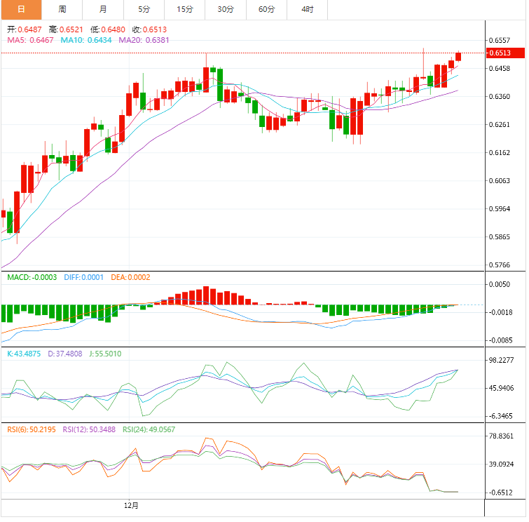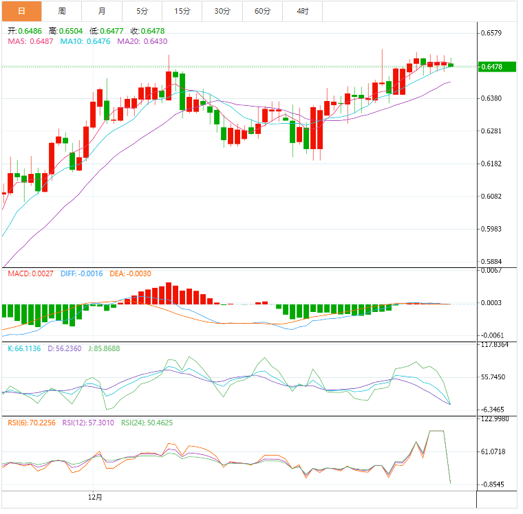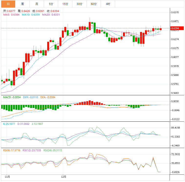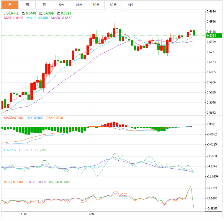 周四盘中,纽元兑美元下跌至0.6394,跌幅0.75%。 基本面上,纽元兑美元小幅走低并远离前一日触及的2020年6月以来最高水平0.6530区域。不过现货价格企稳于0.6400关口上方,在押注其盘中进一步回落之前等待一些强劲的跟进卖盘是审慎的。由于美联储将放慢加息步伐的预期稳固,美债收益率进一步下跌令美元多头处于守势。事
