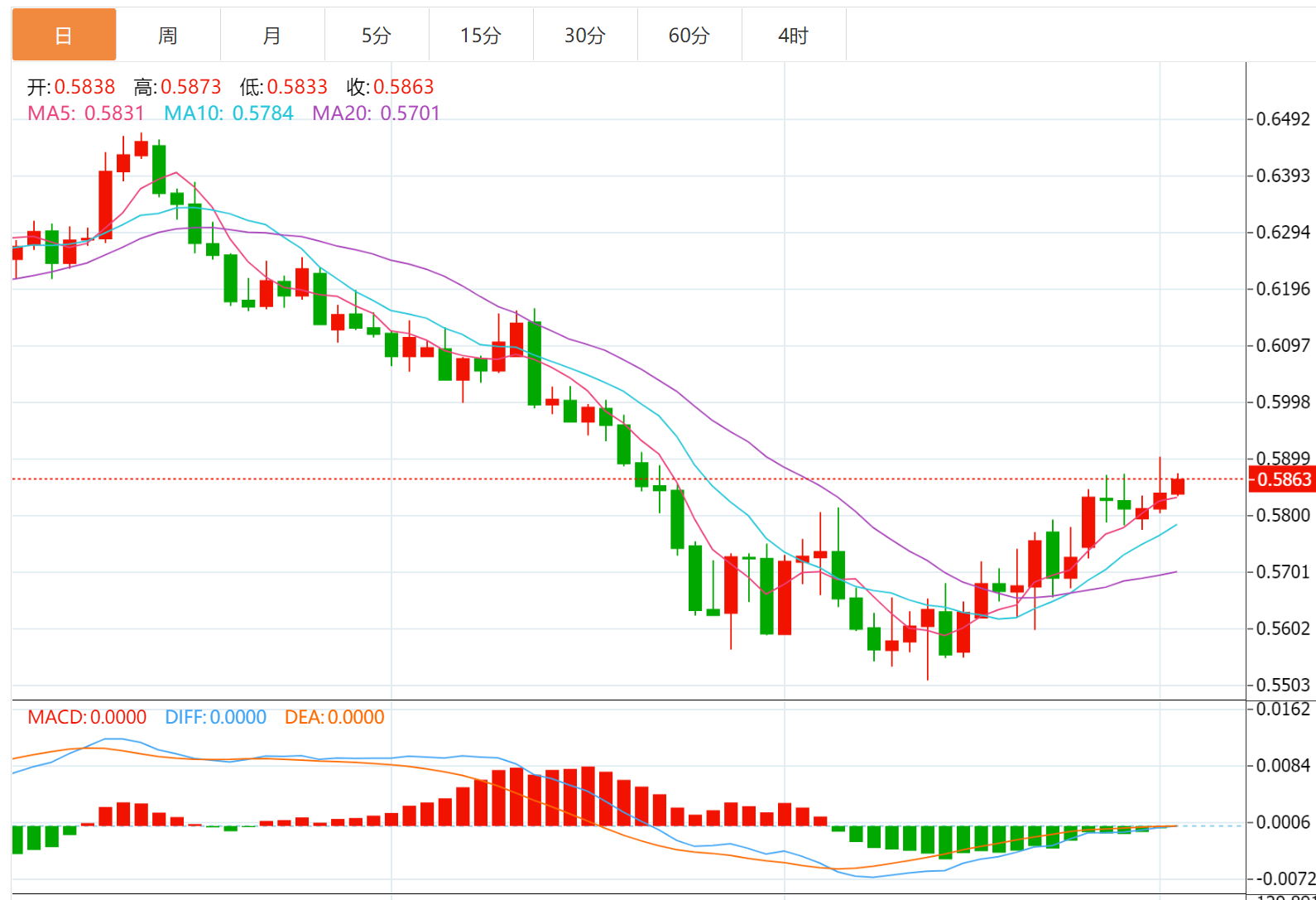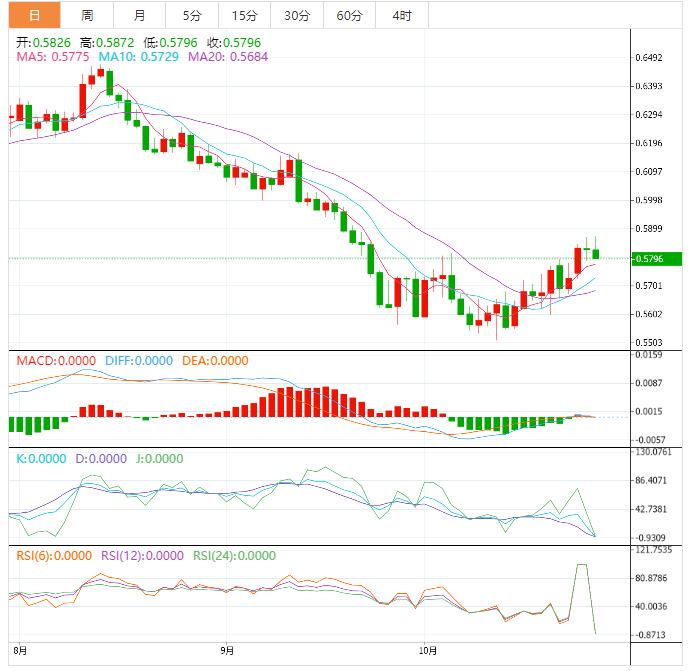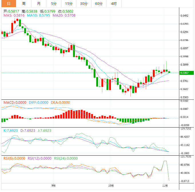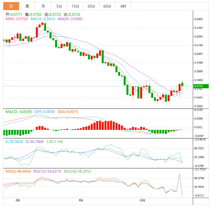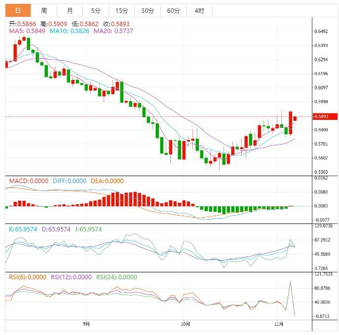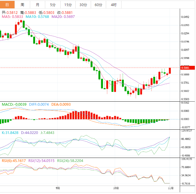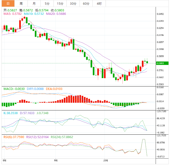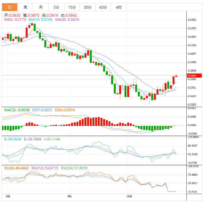 周四盘中,纽元兑美元上涨至0.5844,涨幅0.17%。 基本面上,纽元/美元突破亚市构筑的0.5818-0.5850窄幅区间。市场情绪坚定回升,纽元/美元正稳步上涨,并刷新了日线高位0.5860。展望未来,美国经济数据将成为明确市场波动的催化剂。美国第三季度实际GD年化季率初值期值为2.4%,而不是-0.6%。此外,还将公佈耐用品订单,