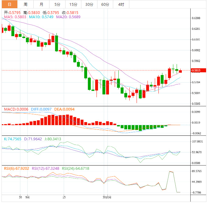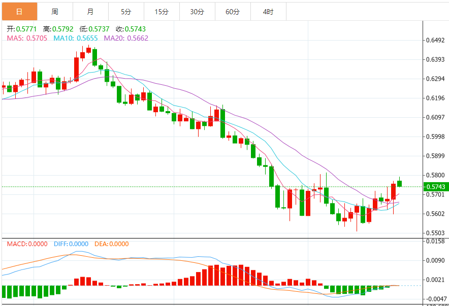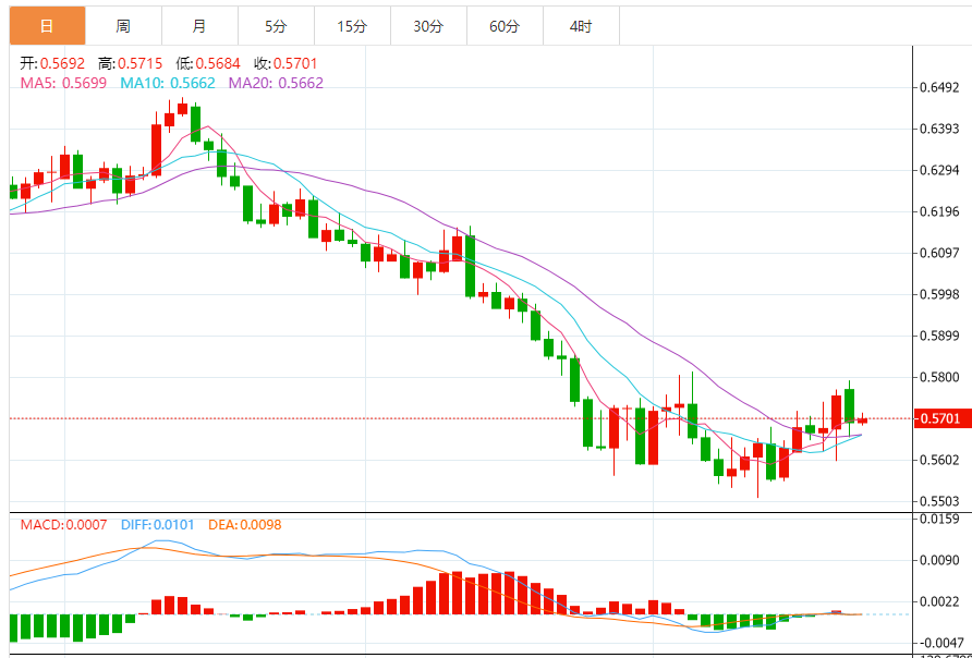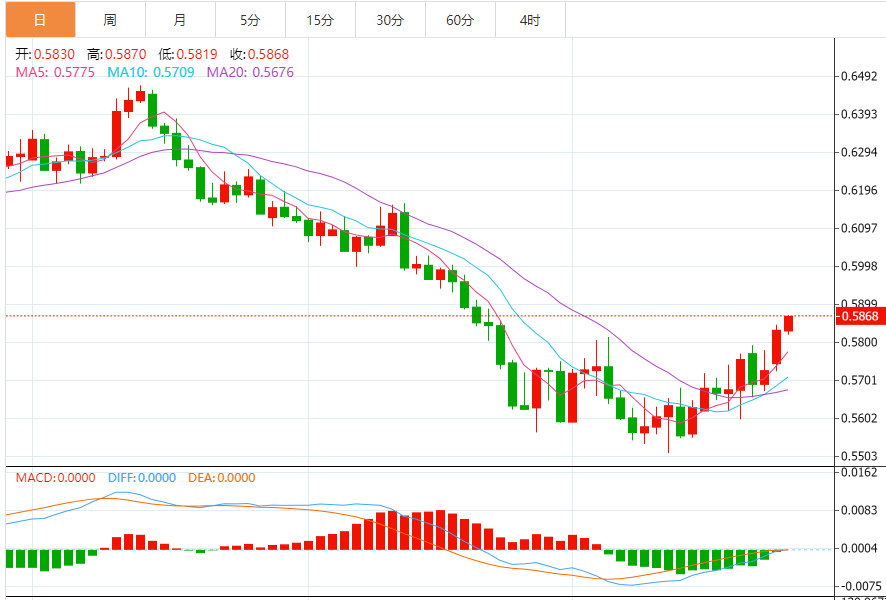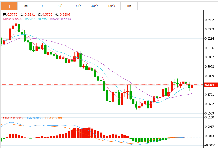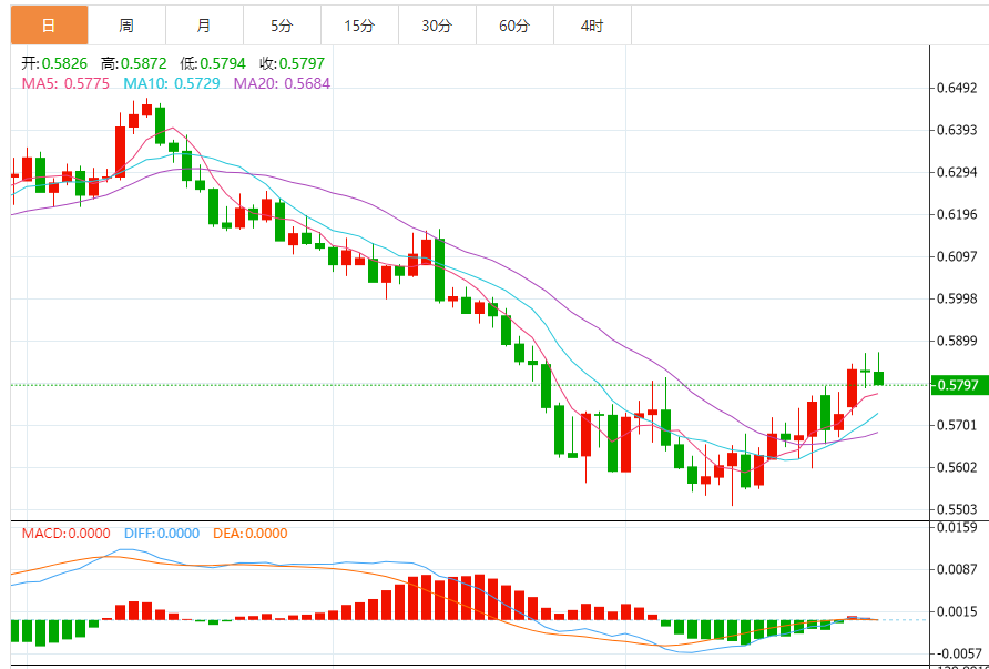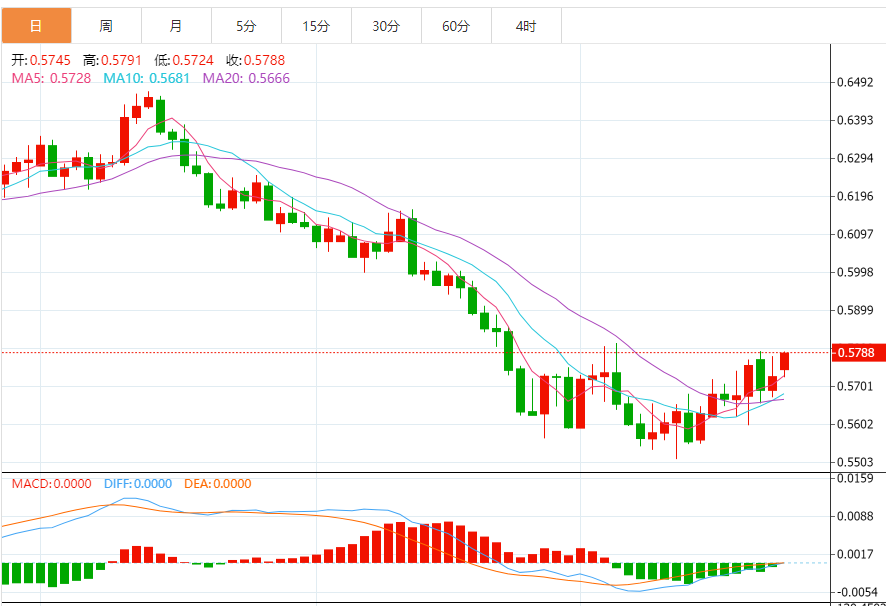 周三盘中,纽元兑美元上涨至0.5768,涨幅0.21%。 基本面上,纽元/美元正逐步逼近0.5800整数关阻力,纽元/美元自0.5680出现新买盘,大幅上涨至0.5780附近。在投资者风险偏好有所改善的情况下,纽元/美元保持了上涨势头。但在此之前,美国新屋销售数据将成为焦点。预计新屋销售将录得58.5万,而前值为68.5万。由于美国利