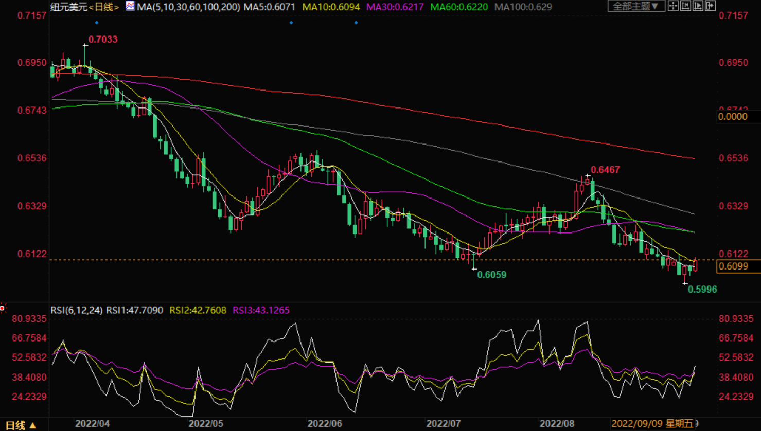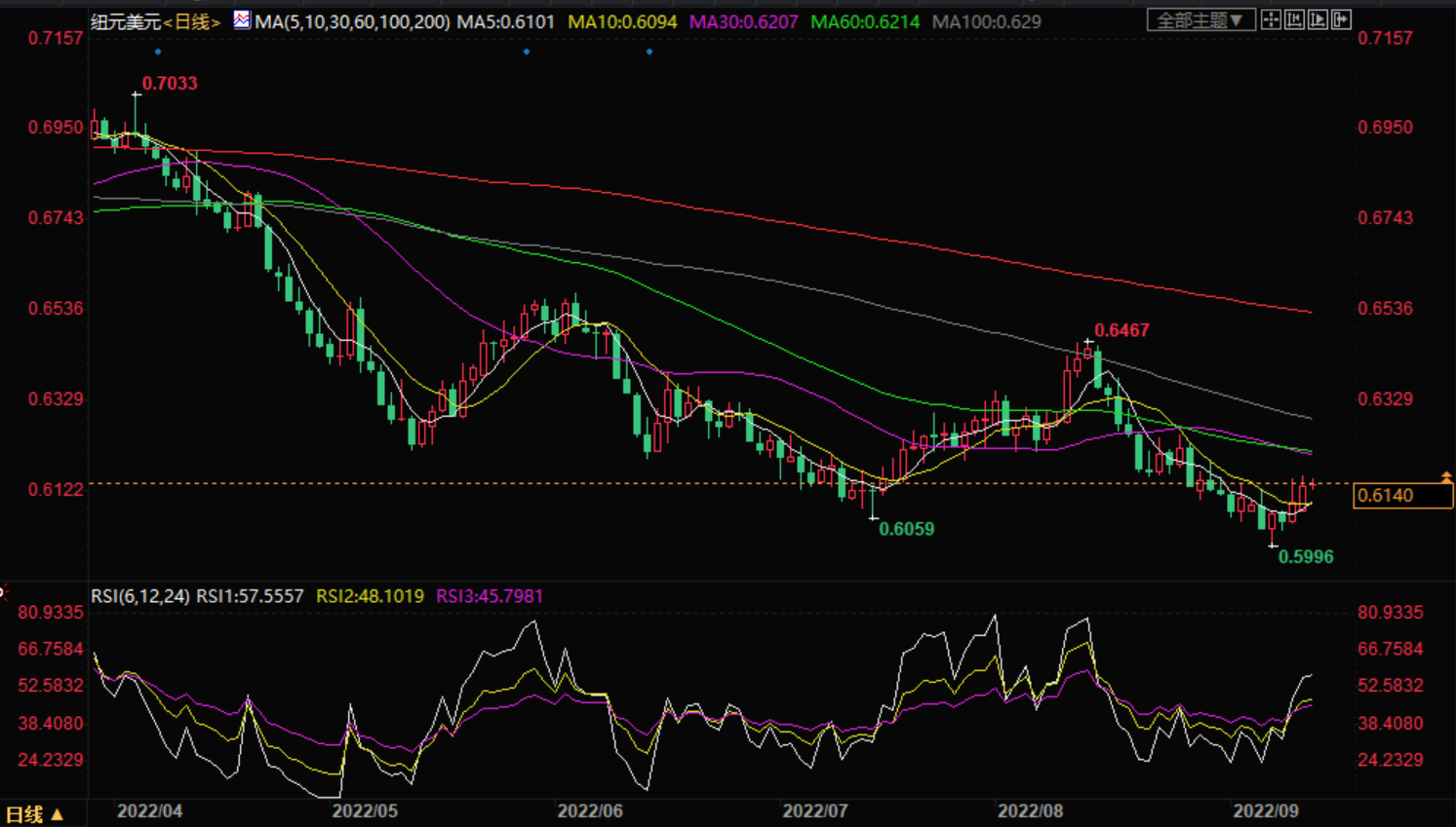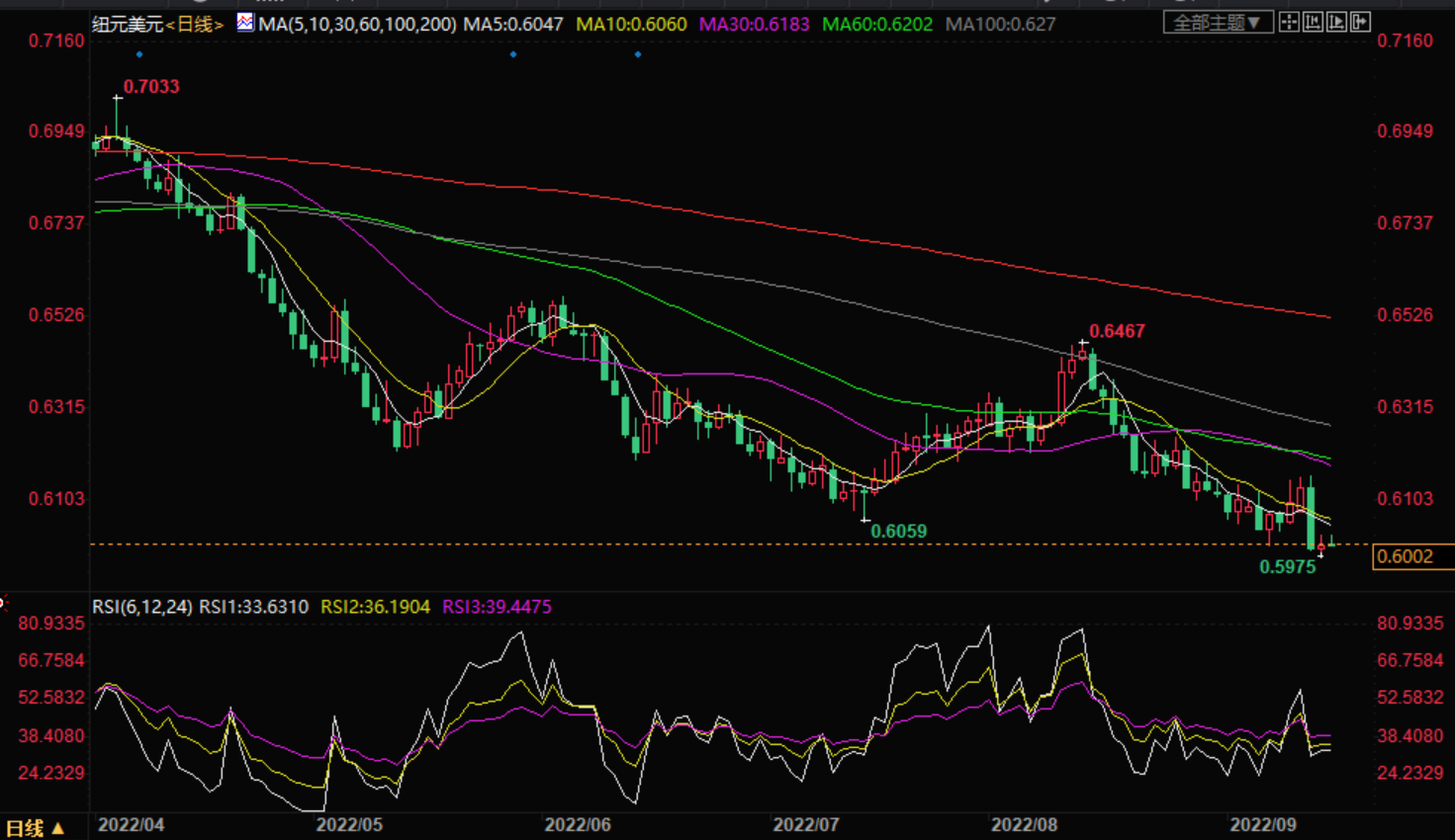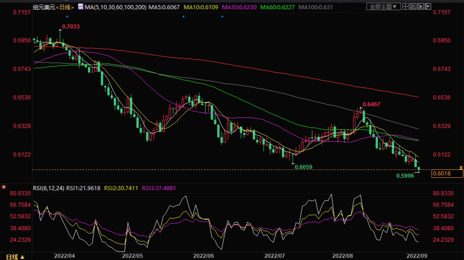 周一欧盘,因美元指数走势强劲,纽元/美元跌破0.60关口,现交投于0.5953附近,市场预计预计纽元将继续承压,因为美联储料将其基金利率高于纽储行的现金利率。 纽元汇率基本面分析 本周新西兰数据清淡,这使得美联储成为唯一的焦点,重要的是,加息75或100个基点将使美联储基金利率高于纽储行的现金利率;这就是纽元所