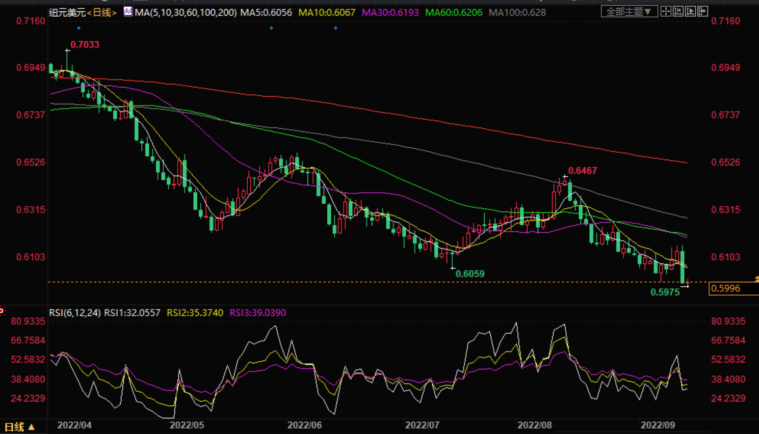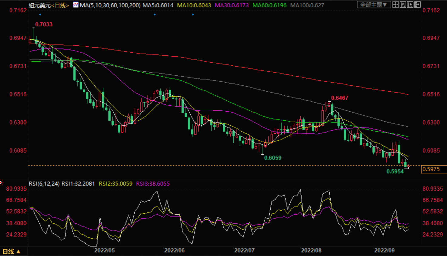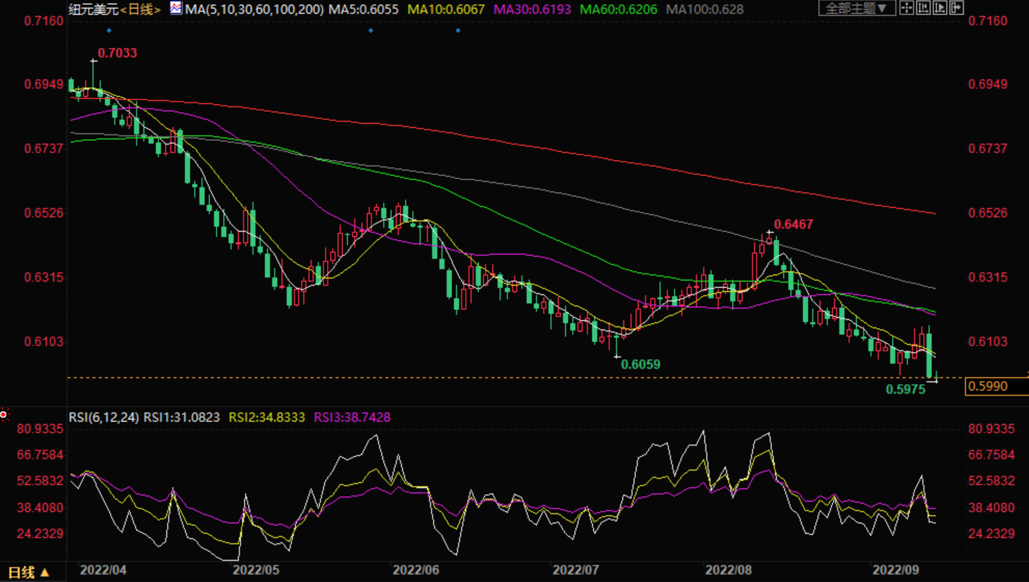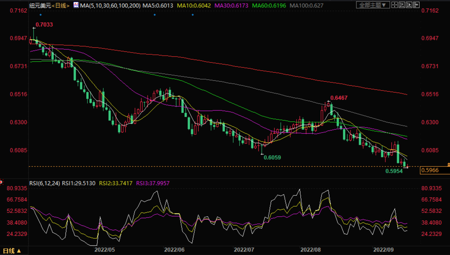 周一欧盘,因美元指数走势强劲,纽元/美元跌破0.60关口,现交投于0.5953附近,市场预计预计纽元将继续承压,因为美联储料将其基金利率高于纽储行的现金利率。 纽元汇率基本面分析 本周新西兰数据清淡,这使得美联储成为唯一的焦点,重要的是,加息75或100个基点将使美联储基金利率高于纽储行的现金利率;这就是纽元所