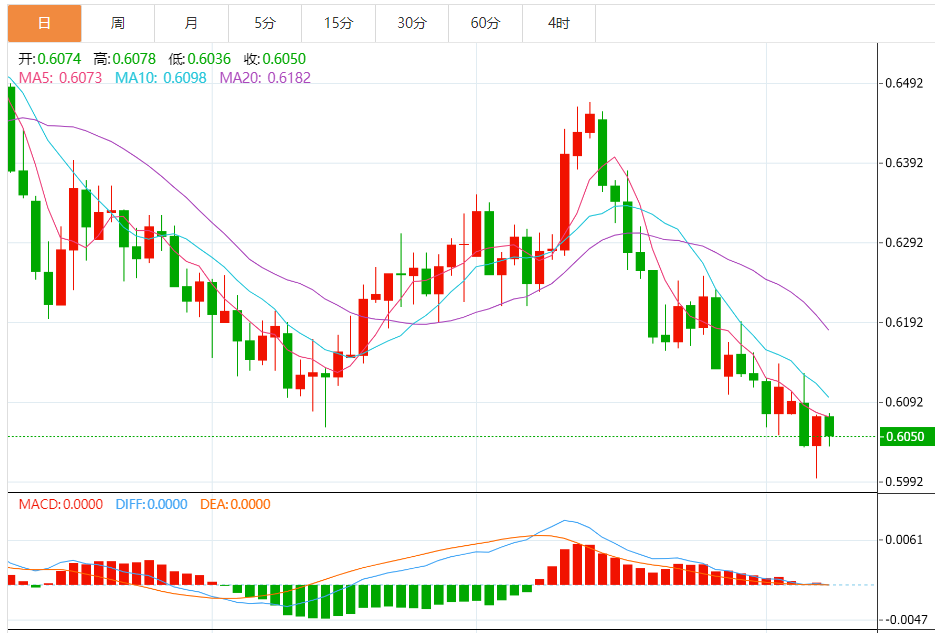 周四盘中,纽元兑美元依然承压于0.6050附近。在最为重要的欧洲央行货币政策会议和美联储主席鲍威尔讲话之前,该货币对逆转了前一日自近2.5年低点以来的反弹行情。 基本面上,本周,美联储(Fd)主席杰罗姆?鲍威尔(Jroowll)的演讲仍将成为焦点。美联储主席鲍威尔预计将提供有关本月可能采取的货币政策行动的线索。美联储很