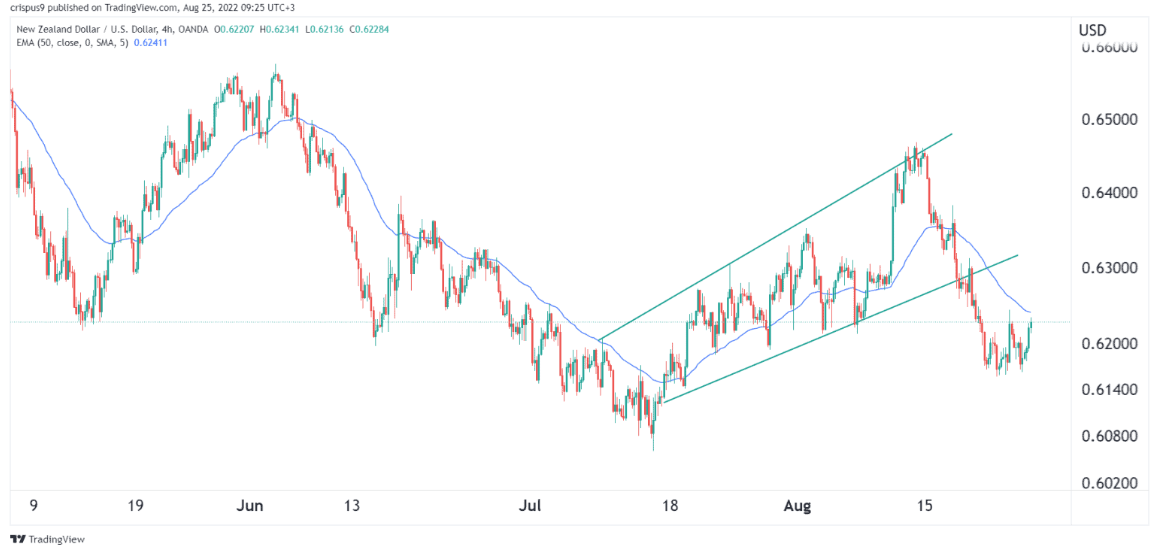 即使在新西兰零售数据相对疲软之后,纽元兑美元的价格仍有所上升。周四,汇率升至0.6227的高点,高于本周的低点0.6160。 新西兰的零售和杰克逊霍尔央行会议 新西兰公布相对疲弱的零售数据后,纽元兑美元汇率小幅上升。这些数据显示,由于通货膨胀持续上升,该国第二季度的销售额下降了2.3%。这一下降比预期中值1.7%的