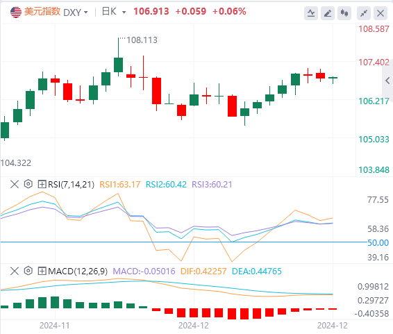此外,服务业采购经理人指数从11月的56.1升至12月的58.5,高于期值55.7。而制造业采购经理人指数从前值49.7降至12月的48.3,低于预期的49.4。交易员将在当天晚些时候从美国零售销售数据中获得更多信号。若零售销售数据疲弱,这可能会对美元造成压力。