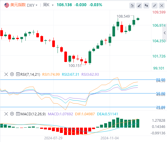 美国10年期国债收益率最近飙升至4.62%,突破阻力位,反映出投资者对美国经济走强的信心和对放缓降息的预期。收益率的上升表明,在全球经济形势不确定的情况下,对更高回报的需求不断增长。较强的10年期国债收益率通常支持美元走强,因为较高的收益率会吸引外国投资。