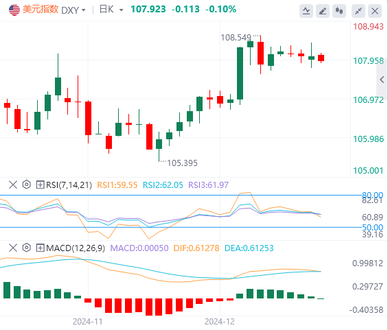 不利的一面是,直接支撑位在107.580美元,进一步保护在107.152美元。该指数徘徊在50EMA的略下方108.033美元,表明短期疲软,但保持在200EMA上方的107.446美元,这支持更广泛的上涨趋势。