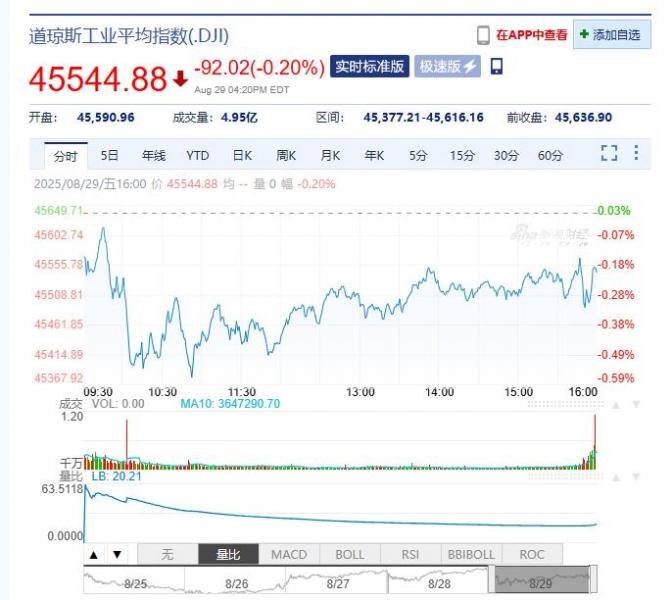 2025年09月01日星期一,以下是由亚汇网整理的昨夜今晨国际财经要闻汇总: 国际股市 一、美股股市:道指跌92.02点,跌幅为0.20%,报45544.88点;纳指跌249.61点,跌幅为1.15%,报21455.55点;标普500指数跌41.60点,跌幅为0.64%,报6460.26点。英伟达(NVDA.U)跌超3.3%,苹果(AAL.U)微跌,亚马逊(AZN.U