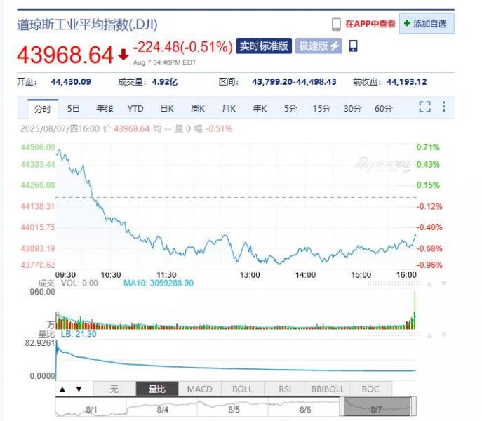 2025年08月08日星期五,以下是由亚汇网整理的昨夜今晨国际财经要闻汇总: 国际股市 一、美股股市:道指跌224.48点,跌幅为0.51%,报43968.64点;纳指涨73.27点,涨幅为0.35%,报21242.7点;标普500指数跌5.06点,跌幅为0.08%,报6340点。新股FirflyAroac(FLY.U)上市首日上涨34.11%,WhitFibr(WYFI.U