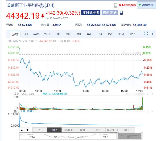 2025年07月21日星期一,以下是由亚汇网整理的昨夜今晨国际财经要闻汇总: 国际股市 一、美股股市:道指跌142.30点,跌幅为0.32%,报44342.19点;纳指涨10.01点,涨幅为0.05%,报20895.66点;标普500指数跌0.57点,跌幅为0.01%,报6296.79点。纳指连续第五个交易日上涨,并创盘中与收盘历史新高。加密概