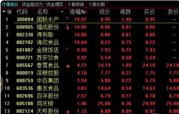 值得注意的是,国联水产已连续三个交易日“20cm”涨停,福成股份、得利斯、海欣食品、金陵饭店、西安饮食均为三连板。