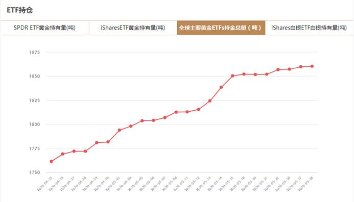 根据黄金信息网站对全球8大主要黄金TF的监控数据显示,截至2020年5月28日,全球8大黄金TF持仓总量为1860.569吨,与上一交易日增加0.585吨。