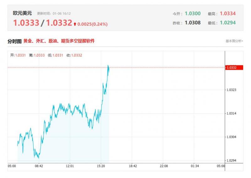 周一(1月6日)亚盘早盘,欧元兑美元上涨,目前交投于1.03附近,截止北京时间16:12分,欧元兑美元报价1.0332,涨幅0.24%,上一交易日欧元兑美元收盘为1.0303。由于投资者等待将于周一和周二分别发布的12月份德国和欧元区统一消费者价格指数(HIC)初步数据,交叉盘整理。 欧洲央行动态 通胀数据将显着影响