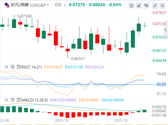 事实上,法国社会党领袖奥利维尔·福尔(OlivierFaure)威胁说,如果该党的预算要求得不到满足,他将在周一之前推翻总理塞巴斯蒂安·勒科尔努(SébastienLecornu)的政府。此外,穆迪评级将法国的前景改为负面,同时重申了aa3评级,因为国内政治不稳定可能会阻碍其应对财政赤字增加、债务负担上升等关键政策挑战的能力。交易员似乎也不愿意,选择等待欧洲央行周四的决定,然后再围绕欧元/英镑交叉盘进行方向性押注。