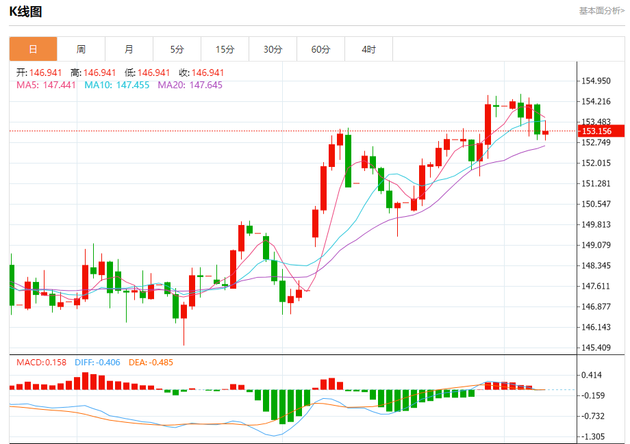 今日周五,欧元兑美元报1.1556,涨幅0.08%;英镑兑美元报1.3126,跌幅0.08%;美元兑日元报153.182,涨幅0.07%。