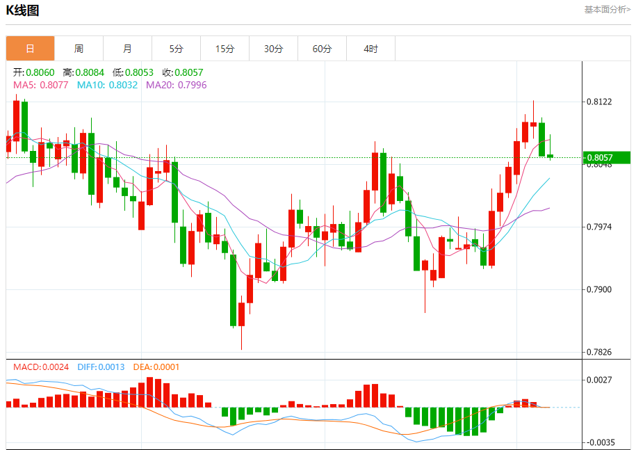 今日周五,澳元兑美元报0.6479,涨幅0.01%;美元兑加元报1.4115,跌幅0.02%;美元兑瑞郎报0.8059,跌幅0.02%。