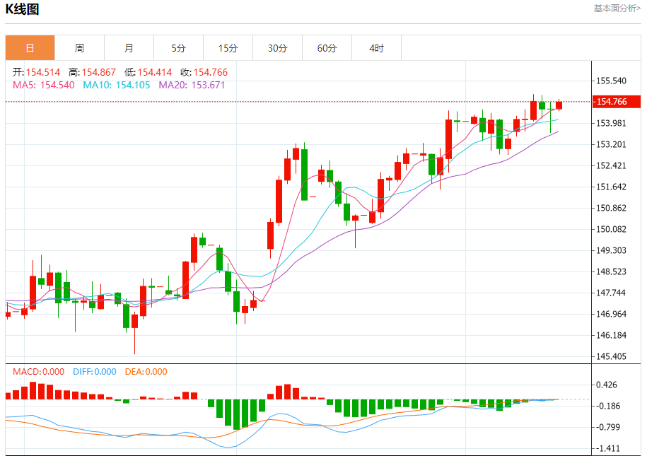 今日周一,欧元兑美元报1.1602,跌幅0.15%;英镑兑美元报1.3187,涨幅0.11%;美元兑日元报154.765,涨幅0.16%。