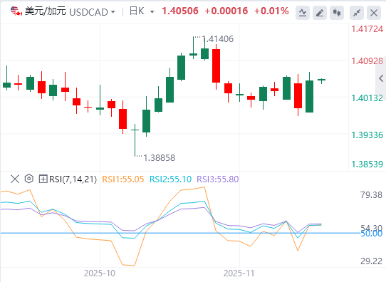 日线图中,美元/加元报1.4043。该货币对站在上升的50日EMA1.3970和200日EMA1.3911上方,强化了多头倾向。两条平均线的正斜率保持了上升趋势的不变。RSI位于54(中性),正在小幅上升,预示着坚挺动能。