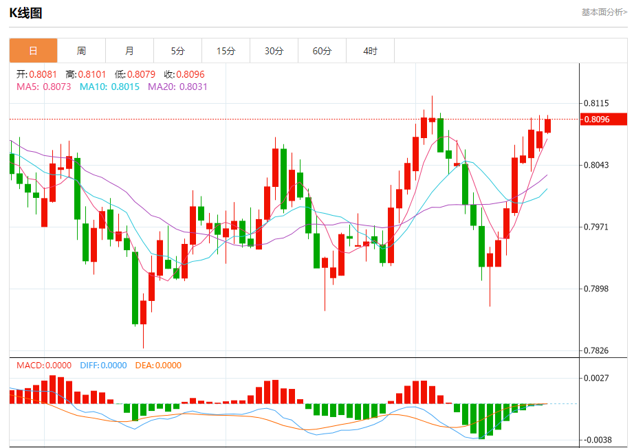 今日周二,澳元兑美元报0.6450,跌幅0.19%;美元兑加元报1.4122,涨幅0.10%;美元兑瑞郎报0.8098,涨幅0.17%。