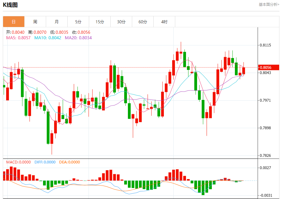 今日周五,澳元兑美元报0.6527,跌幅0.10%;美元兑加元报1.4026,跌幅0.03%;美元兑瑞郎报0.8058,涨幅0.12%。
